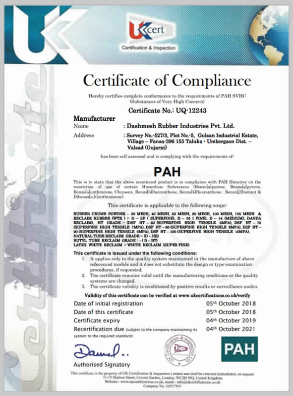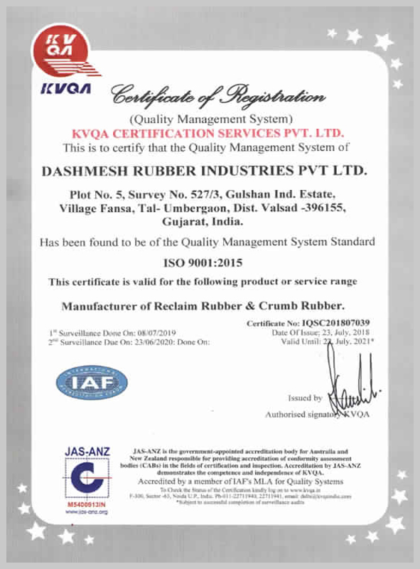 At Dashmesh Group, modern testing, processing and handling technologies have taken the traditionally-inspired production process even higher. All inputs are carefully selected and samples of every batch are additionally tested. Our ISO 9001:2015 certified by KVQA ensures effective quality systems, strict dimensional control and product relaibility by strenous chemical and physical tests. Findings are recorded and used for analysis and regular discussions with clients to maintian a common understanding of norms. Only after ensuring that the rubber quality meets international standards of ISO 9001:2015 are the consignments released for despatch.